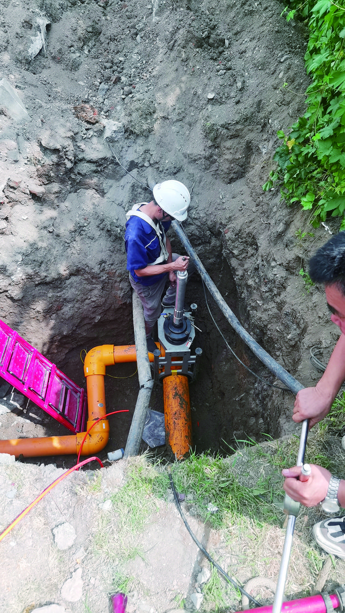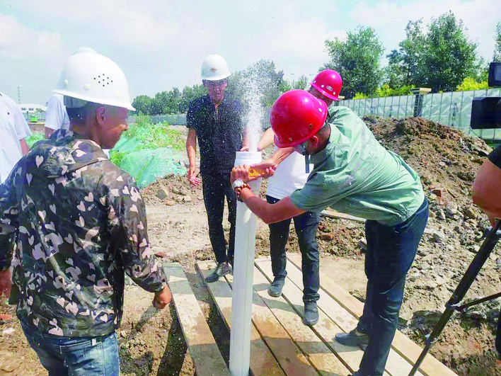 經(jīng)開區(qū)觀天下二期項(xiàng)目用水工程從報(bào)裝到通水僅用了40分鐘。圖為工作人員打開水管閥門?!绑@喜!”20日, 上午,在經(jīng)開區(qū)觀天下二期項(xiàng)目的工地.上,吉林富騰集團(tuán)房地產(chǎn)開發(fā)有限責(zé)任公司總經(jīng)理助理陳中秋看著水管里冒出的水流,高興得合不攏嘴。
